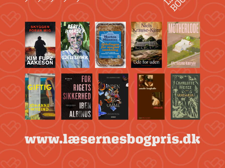 Du kan stemme på din favorit på https://laesernesbogpris.dk/ og være med til at afgøre hvem der skal vinde Afstemningen starter i dag den 30. marts og løber til og med den 19. april 2026. Vinderen af prisen afsløres og prisen overrækkes til Det Bibliotekspolitiske Topmøde i Viborg den 23. april
